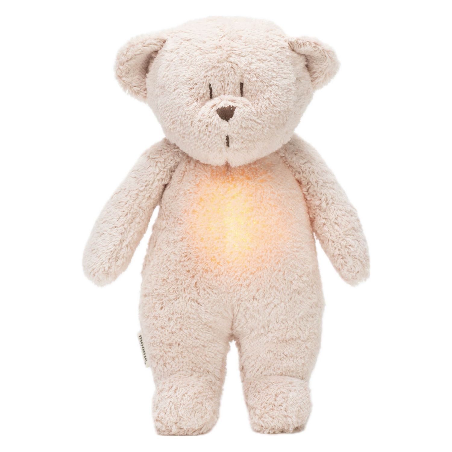 Daarnaast kun je kiezen uit 5 verschillende LED-lichtjes die uit de buik van de knuffel komen. Met zacht licht kun je je baby gemakkelijk voeden en verschonen zonder het plafondlicht aan te doen. De LED-lamp warmt niet op en is volkomen veilig. De lamp van de Moonie beer is ook leuk voor oudere kinderen, die vaak nachtmerries hebben en bang zijn in het donker. Je kunt de nachtlamp zelf geluidloos aanzetten en de hele nacht laten branden.